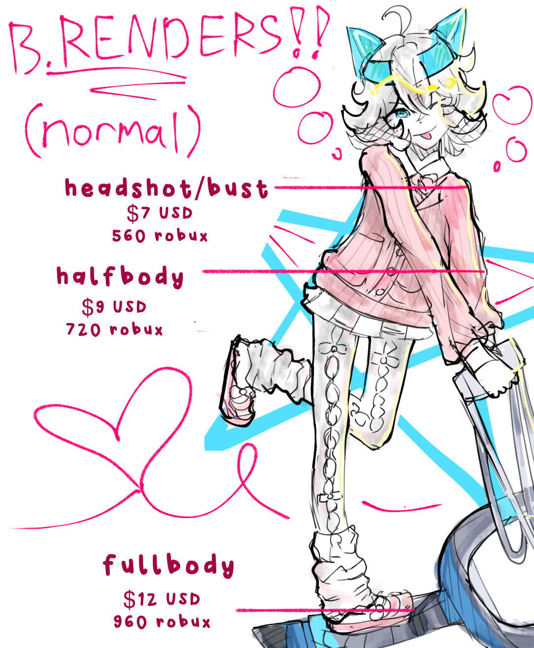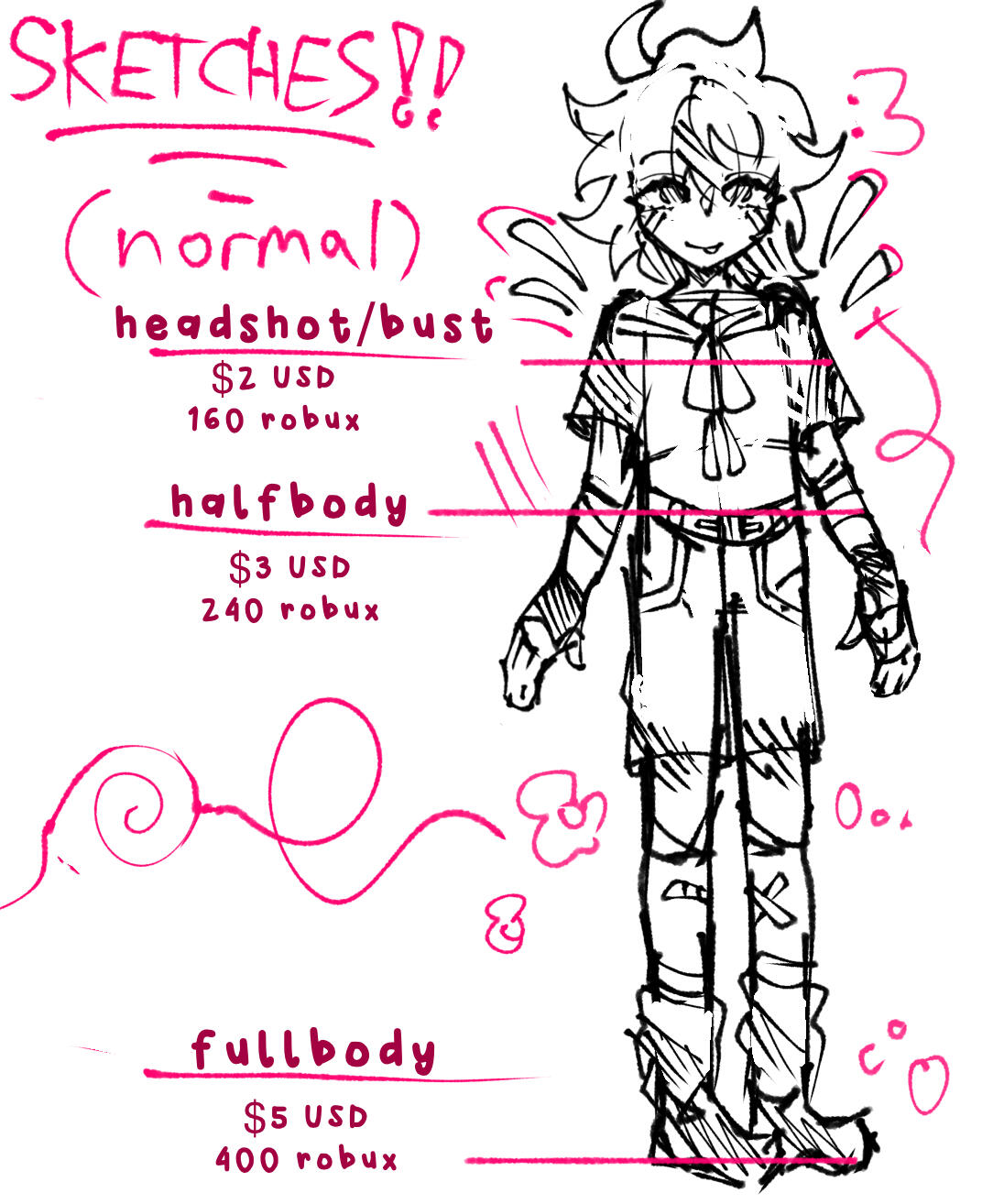 - please note that i may decline your request due to the fact i don't think i'm capable of doing it ! (ex: pose/perspective too extreme, design too hard to comprehend) i'm not a professional, so take that into consideration when ordering
